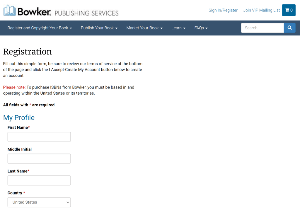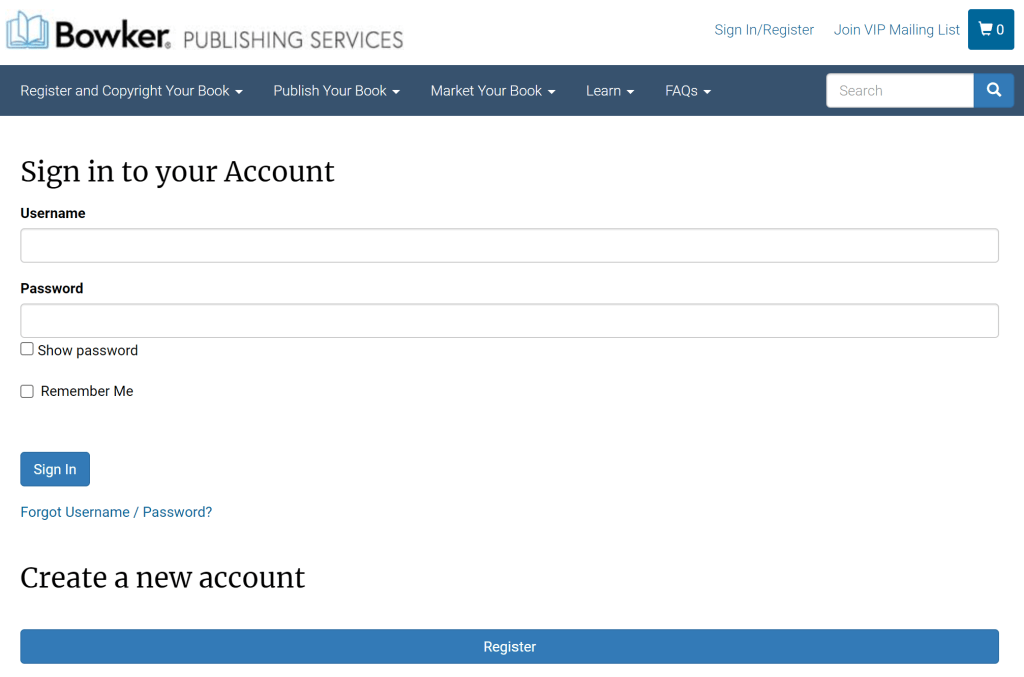 - Under “New Bowker Customer?”, click “I am a New Bowker Customer.”