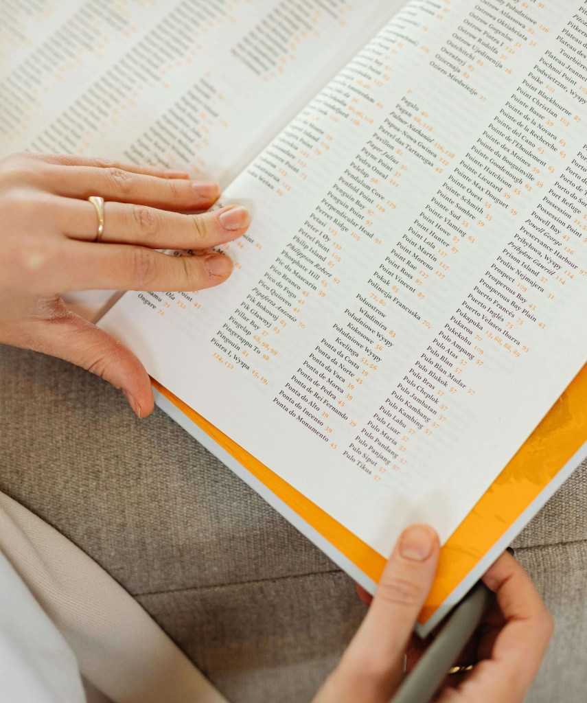 Many informational texts have indexes to help readers find where significant topics are discussed. Indexing software exists to make formatting the index more straightforward. The indexer and editor create a list of pertinent topics and words, and the indexer combs through the text for the places where they appear. Searching the book’s PDF for instances a word is helpful, but the indexer must also identify places where a topic is discussed without using that exact word. This includes searching photographs, graphics, charts, and illustrations. The final index is alphabetized, and the page number(s) for the most definitive discussion of each term is often set in bold.