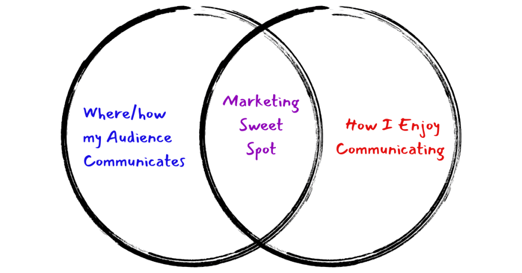 There’s no point advertising to romantasy readers in a sports magazine. And you’ll quickly burn out if you force yourself to give live presentations when public speaking makes you sick. You’re looking for the sweet spot where the ways your audience likes to receive communication and the ways you like to give it overlap.