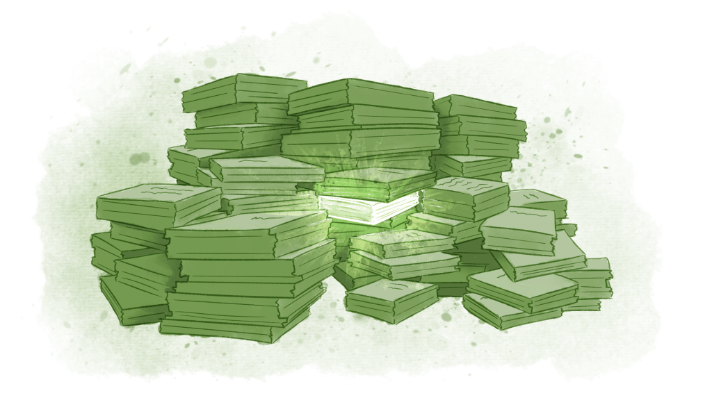 reading the submissions pile and choosing books for a publishing house to acquire.